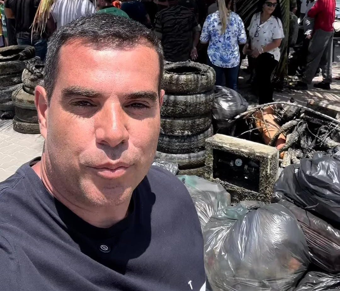 Direto da Fonte | Fabinho de Iguaba ajuda a recolher quase 1 tonelada de lixo da orla da lagoa