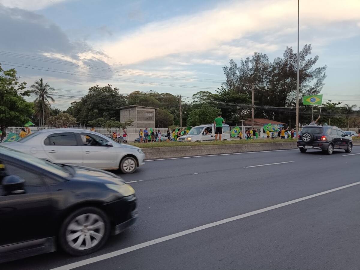 Apoiadores de Bolsonaro fazem manifestação na RJ-140, em São Pedro da Aldeia