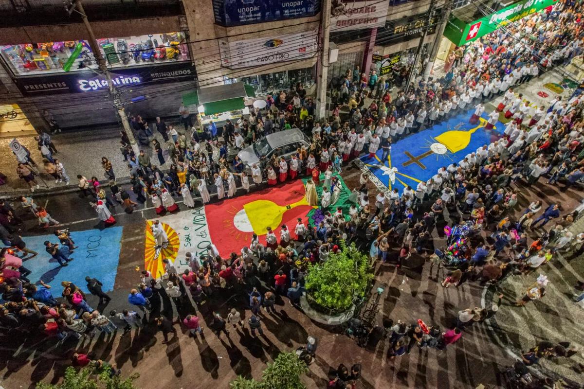 Ainda no Centro, após a confecção dos tapetes haverá a tradicional Santa Missa e a procissão com o Santíssimo Sacramento, às 16h. A partir das 20h30, na Praça Porto Rocha, em frente à Matriz Histórica de Nossa Senhora Assunção, fiéis, moradores e turistas poderão aproveitar o show do cantor Oswaldo Guimarães.