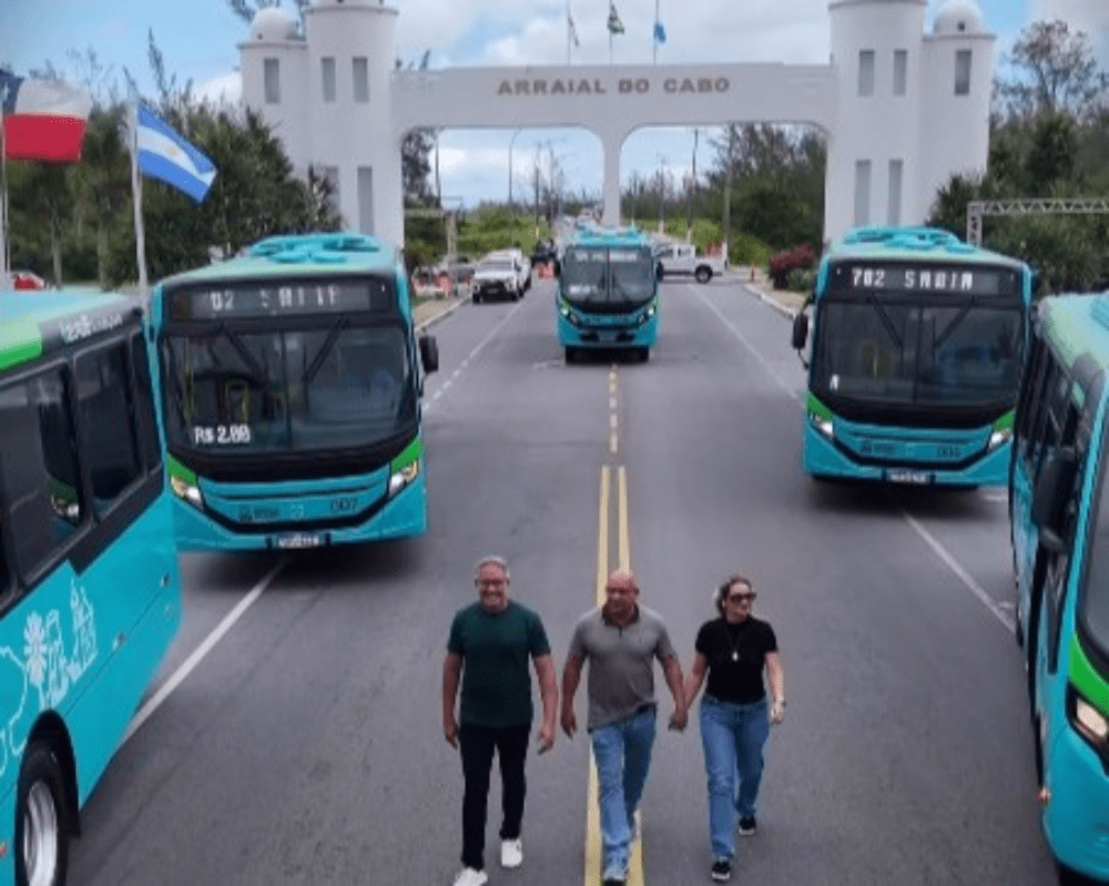 O prefeito Marcelo Magno (PL) deu início, nesta segunda-feira (2), a uma das mudanças mais emblemáticas da mobilidade urbana de Arraial do Cabo: o transporte coletivo passou oficialmente a ser administrado pelo poder público municipal. Ao meio-dia, os novos ônibus começaram a circular pelas ruas da cidade. Na solenidade estavam presentes vereadores cabistas Diego Bastos, Ayron Freixo, Tayron Carlos, Kalico Barros, o secretário de turismo, Junior Chuchu a subsecretária de Meio Ambiente, Daiana Cabral.