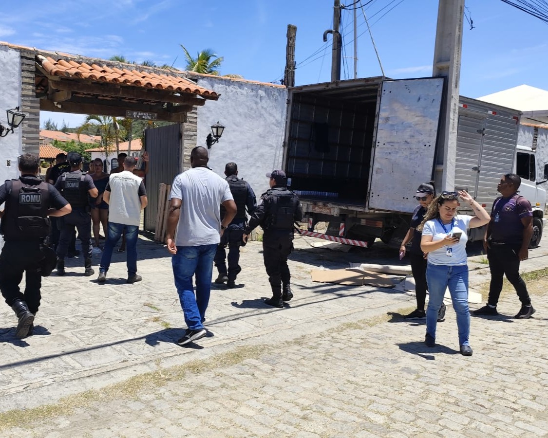 Uma operação conjunta entre a Secretaria Municipal de Segurança e Ordem Pública, a Secretaria de Meio Ambiente, Saneamento e Clima, o 25º Batalhão da Polícia Militar, Polícia Civil, a Fiscalização de Posturas e a Guarda Civil Municipal impediu a realização de um evento sem autorização neste fim de semana, na Avenida dos Arpões, no bairro Ogiva, em Cabo Frio.