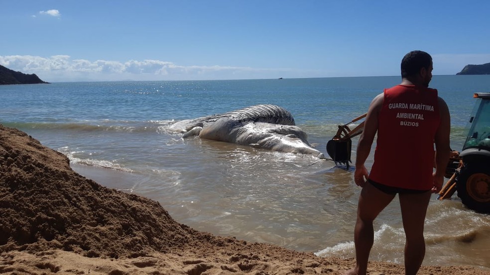 Agentes da Guarda Marítima e Ambiental de Armação dos Búzios retirou a carcaça de uma baleia da espécie jubarte na Praia Brava, em Armação dos Búzios. A remoção durou cinco horas e foi concluída neste domingo (2).