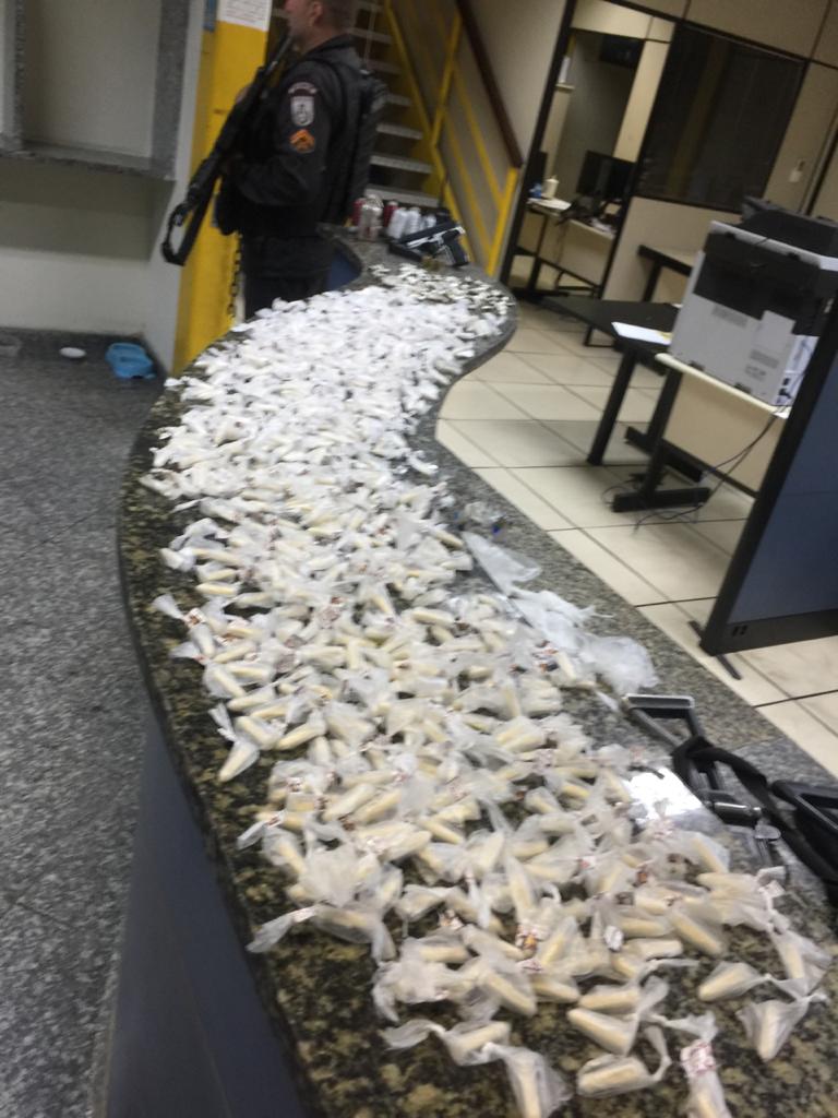 Ainda de acordo com a polícia, a equipe encontrou com o suspeito uma granada, um simulacro de arma de fogo, seis granadas artesanais, 130 buchas de maconha e 700 cápsulas de cocaína.