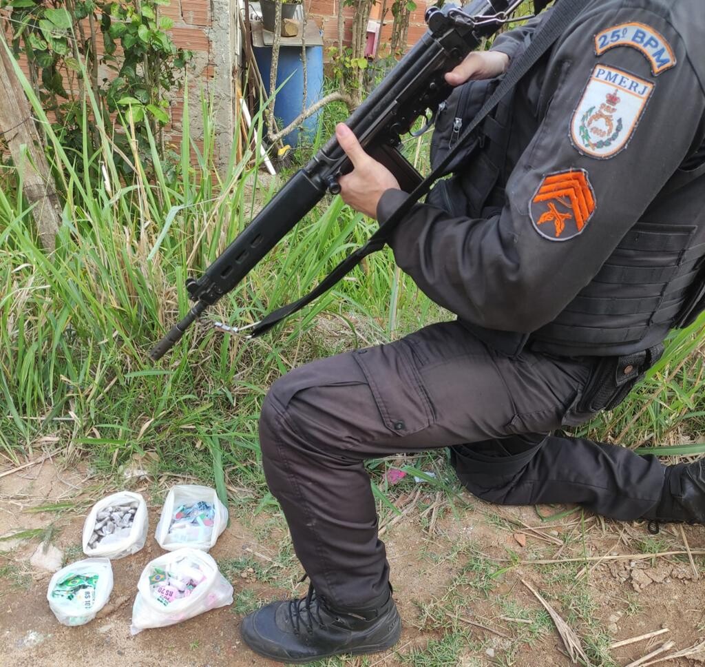Após denúncias de que um suspeito estaria traficando drogas no local, a polícia foi até o endereço onde avistou um rapaz entregando algo a outro suspeito.