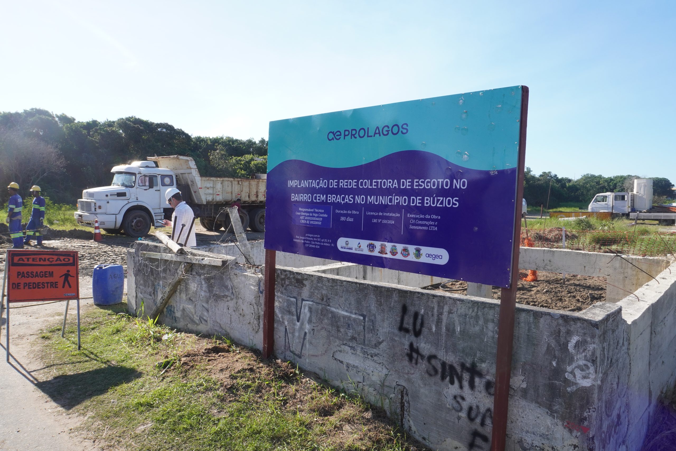 Foi iniciada em Búzios as obras da nova rede separativa de esgoto no bairro Cem Braças. A intervenção, que será feita em 19 ruas até o fim do ano, começou pela Rua Casuarina e agora avança para a Rua Brasil, onde serão implantados mais de 200 metros de tubulação. A iniciativa é fruto de uma parceria entre a concessionária Prolagos e a Prefeitura da cidade.