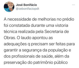 Bonifácio rebateu informações veiculadas pela internet de que a UPA do distrito seria fechada.