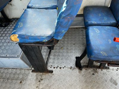 As fotos enviadas pela Prefeitura, feitas na tarde do dia 1º de agosto, mostram que, apesar da limpeza realizada, os ônibus ainda apresentam vestígios visíveis de sujeira nos assoalhos, nos estofados e nas laterais internas.