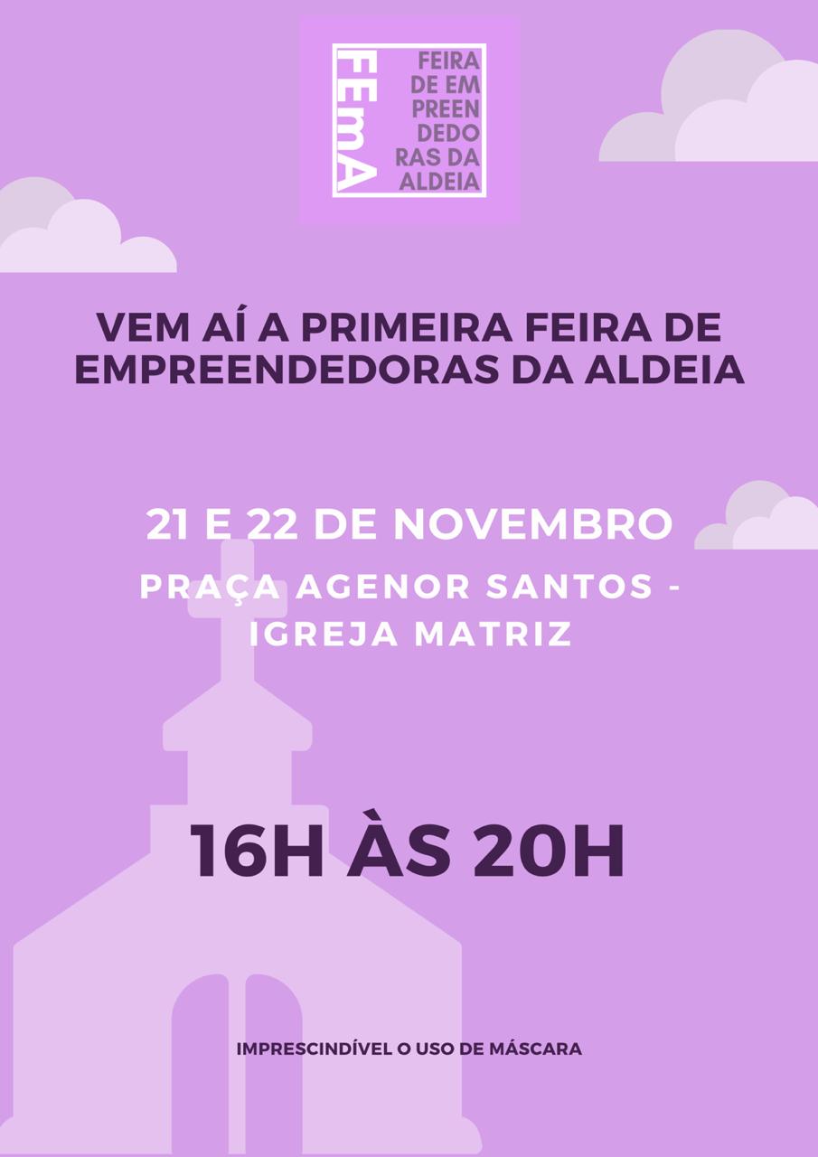 A primeira edição da Feira de Empreendedoras da Aldeia acontecerá neste sábado (21) e domingo (22), de 16h às 20h, na Praça Agenor Santos em São Pedro da Aldeia.