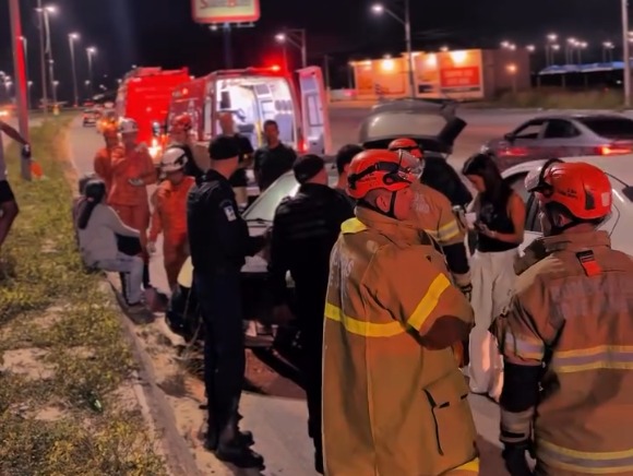 O acidente aconteceu por volta das 19h30, na altura do bairro Fluminense, próximo a supermercado atacadista. Segundo o Corpo de Bombeiros, um homem e uma mulher, ambos com 63 anos, foram socorridos e levados ao Pronto Socorro municipal. Ele apresentava ferimentos moderados; ela estava em estado estável. Uma terceira vítima, uma mulher de 38 anos, recebeu atendimento no local e foi liberada.