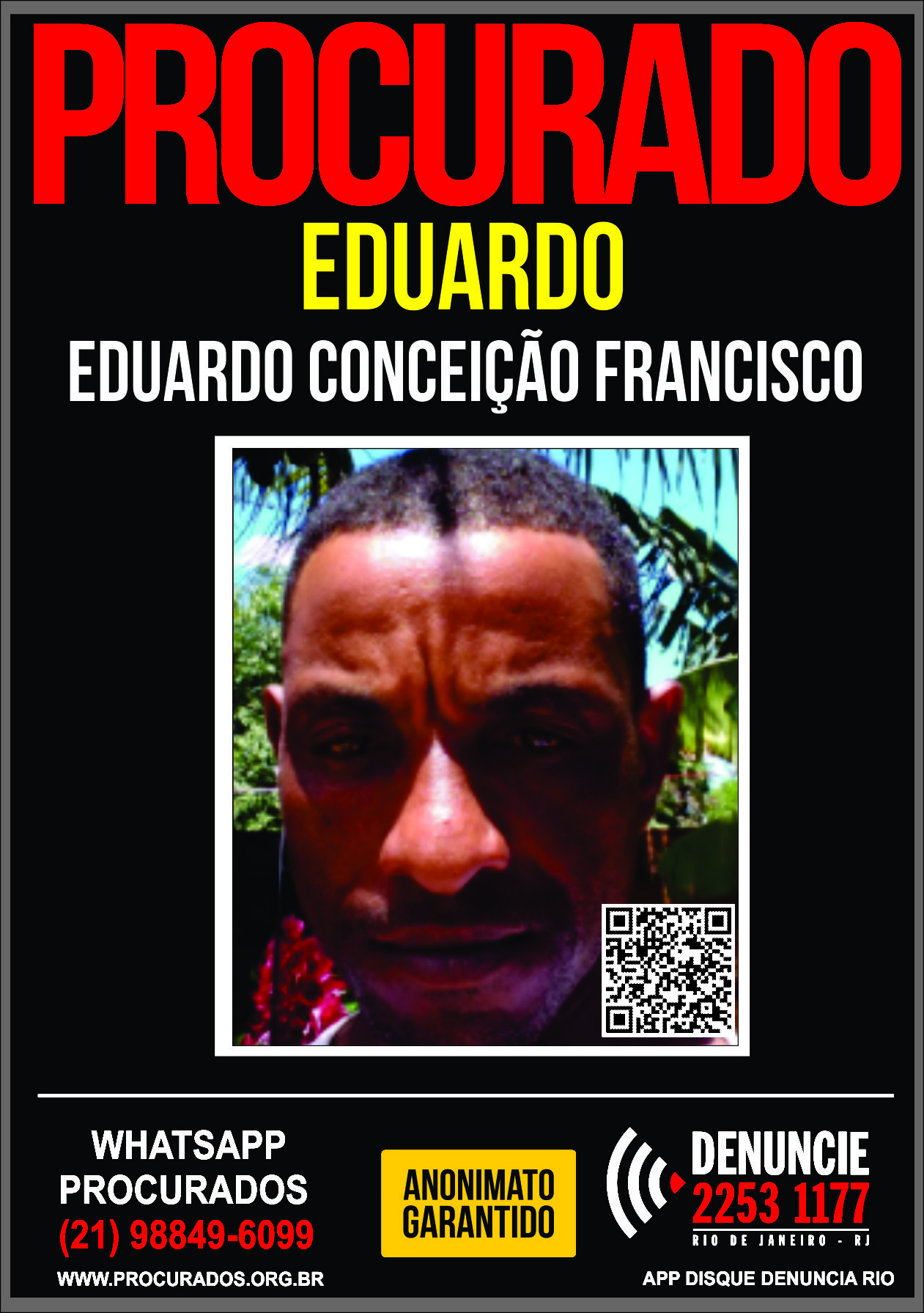 Quem tiver qualquer informação a respeito da localização de Eduardo Conceição, que ainda se encontram em liberdade, pedimos que denuncie anonimamente pelos seguintes canais abaixo:
