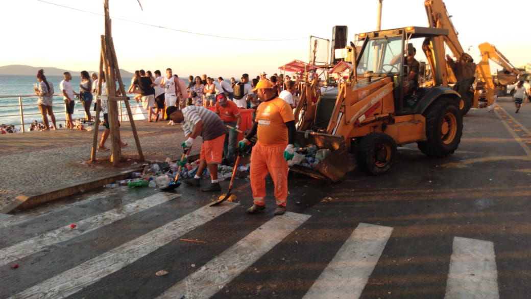 Nas praias do Peró e Conchas os funcionários iniciaram a limpeza às 2h30. Na Ilha do Japonês a retirada do lixo foi realizada com o auxílio de uma embarcação. No Segundo Distrito, às 4h30, 100 profissionais executaram a limpeza da área de eventos, local onde aconteceram os shows e queima de fogos.