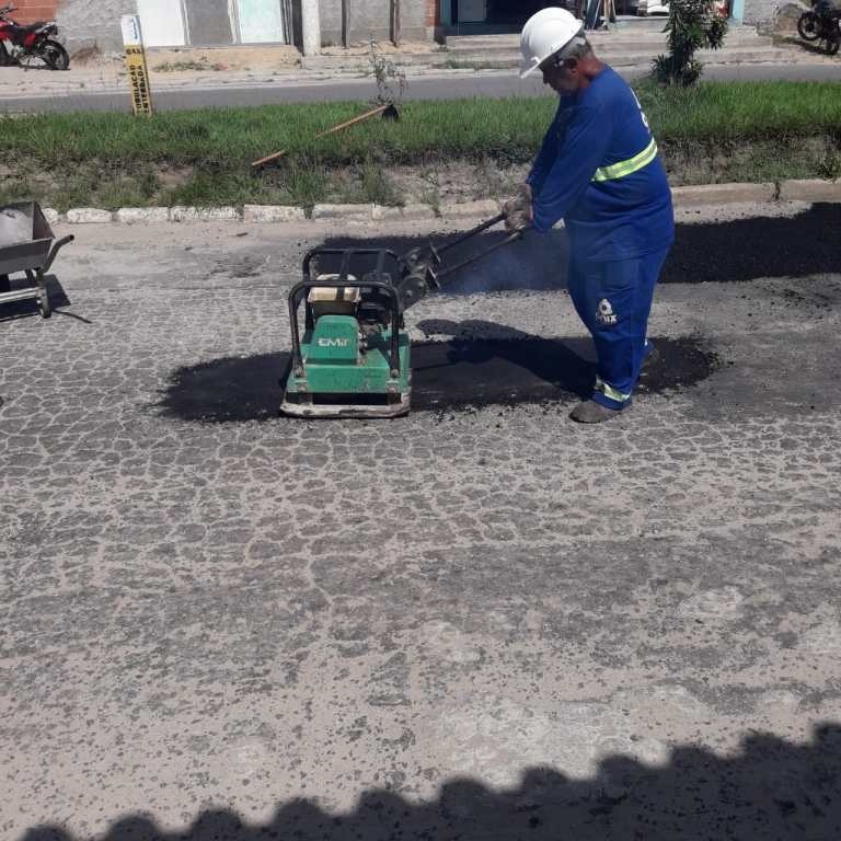 A operação também realizou a colocação de massa asfáltica no trecho a partir do encontro com a Rua Grécia. A iniciativa foi feita com dois caminhões em parceria com a Comsercaf e a concessionária de água e esgoto da região