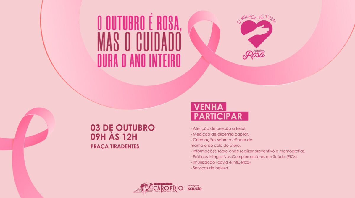Na próxima terça-feira (3), a Praça Tiradentes, em frente à prefeitura de Cabo Frio, se iluminará em tons de rosa para dar início às ações oficiais do Outubro Rosa na cidade. A Secretaria de Saúde de Cabo Frio preparou uma programação especial para o mês, para conscientizar a população sobre a importância do diagnóstico precoce do câncer de mama e do colo do útero.
