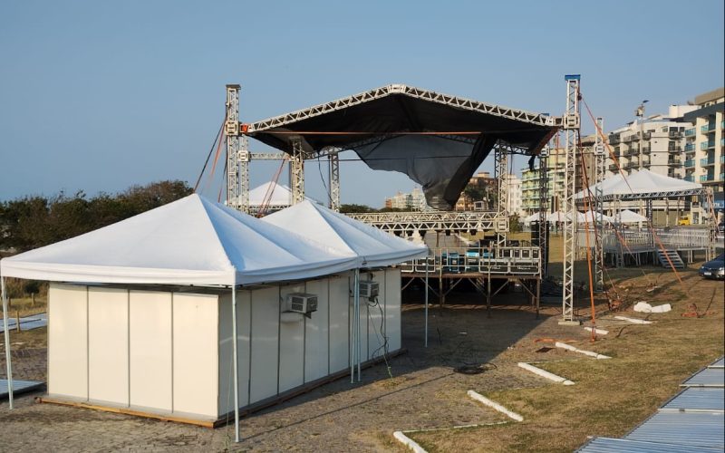 Palco da 19ª Parada do Orgulho LGBTI+ de Cabo Frio já está montado na Praia do Forte