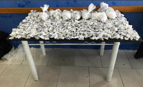 Policiais militares do 25º Batalhão apreenderam 2.041 buchas de maconha e 26 pinos de cocaína durante uma operação no bairro Monte Alegre, em Cabo Frio, neste sábado (3).