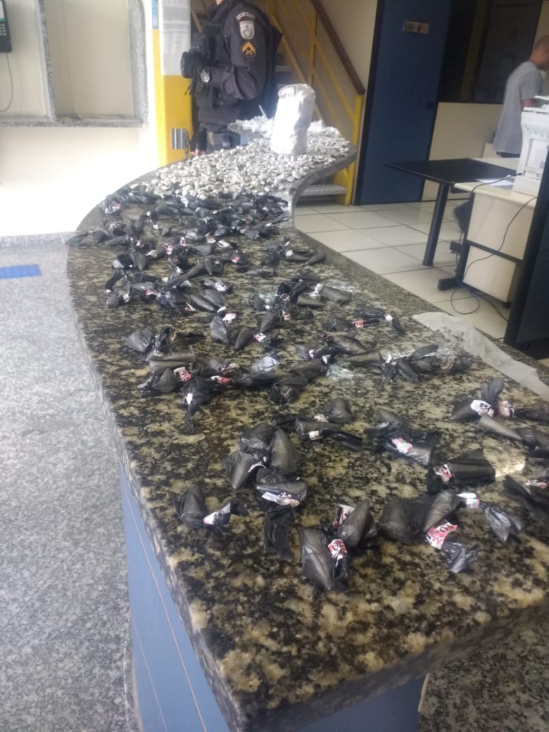 Um menor de idade foi apreendido por policiais militares nesta sábado (8), na Rua do Forno, no Morro do Limão, Jardim Esperança, em Cabo Frio. Com ele foram encontrados 1 Kg de maconha prensada, 966 buchas da mesma droga, R$ 106 pinos de cocaína e uma pequena quantia de dinheiro.