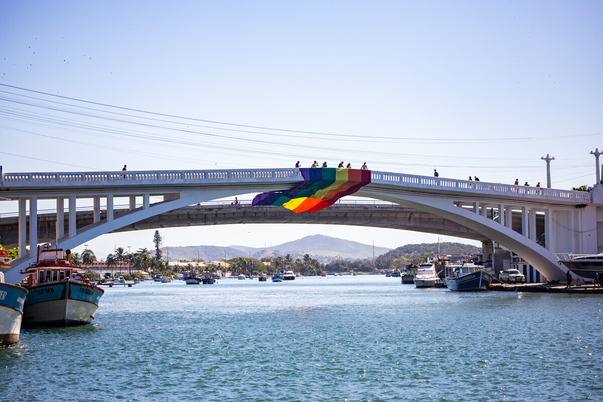 Ponte Feliciano Sodré e orla da Praia do Forte, em Cabo Frio, ganham as cores do arco-íris, no Dia Internacional do Orgulho LGBTI+