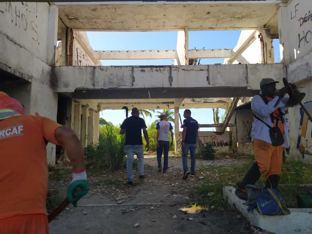 Na última terça-feira (12) o prefeito acompanhou uma ação dos servidores da Comsercaf, da Secretaria de Saneamento e Meio Ambiente e da Secretaria de Obras e Serviços Públicos, que retiraram lixo e entulho e realizaram a capina do local, que está abandonado desde 2015 e é motivo de preocupação para a vizinhança devido à sujeira e uso indevido do prédio pela criminalidade.