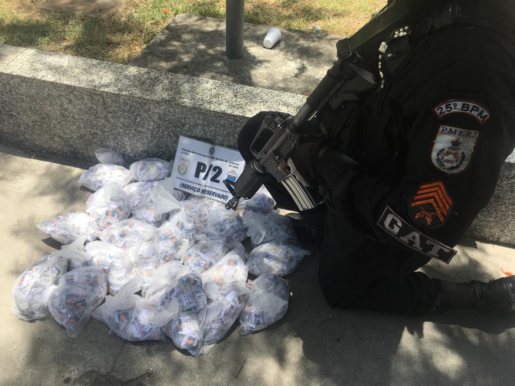 Uma equipe da Polícia Militar localizou uma carga de 3.380 cápsulas de cocaína, no valor aproximado de R$ 60 mil, em uma área nas Dunas, no Manoel Corrêa, em Cabo Frio.