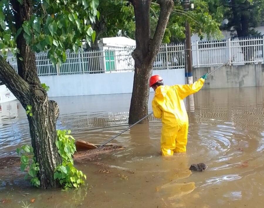 Em Armação dos Búzios, uma equipe de eletromecânica da concessionária foi acionada para fazer o reparo emergencial de bombas do município. Além disso, um caminhão vacol ajudou a desobstruir manilhas da rede de drenagem, escoar as ruas e retirar água das casas dos bairros Bosque de Geribá, Vila Luíza e Cem Braças, um dos mais impactados. Em Tucuns, um conjunto motobomba está sendo utilizado para baixar o volume da água e outras duas bombas estão à disposição da Secretaria de Obras e Saneamento para ajudar a drenar os imóveis que ficaram alagados.