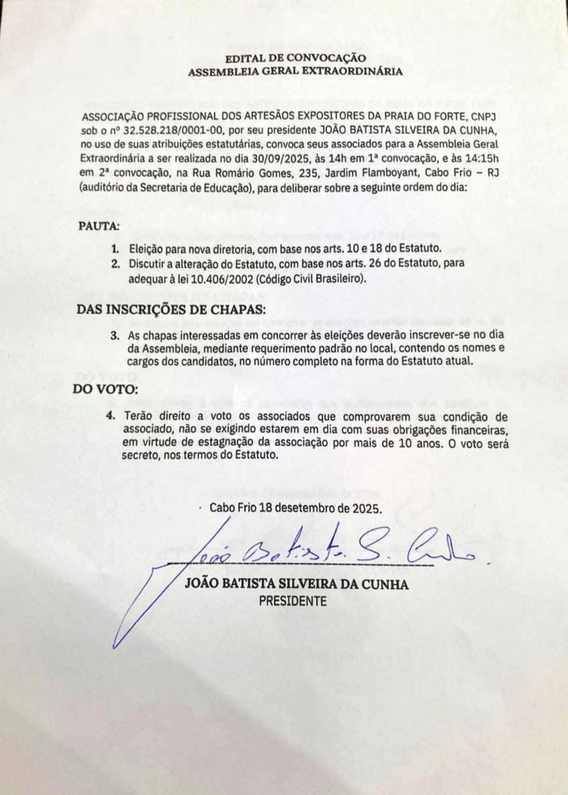 Flamboyant, Cabo Frio – RJ (auditório da Secretaria de Educação), para deliberar sobre